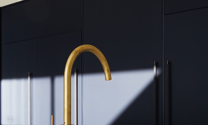 Inky Blue and Brass a great kitchen combo